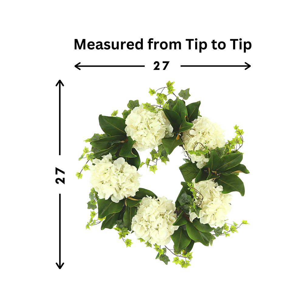 Welcome the warmth and joy of spring with our 27″ wreath! This lush wreath is a delightful symbol of the beauty that comes with new beginnings. Handcrafted with love, attention to detail, and lifelike elements, it brings a touch of classic elegance to your home. This stunning piece features faux white hydrangea and ivy, creating a delicate frame guaranteed to revive any indoor or outdoor space. With this show-stopping accent on your wall or door, you can instantly uplift the ambiance of any room in your home. Whether it’s for special occasions or just everyday décor, this exquisite piece will surely be admired by all who pass by. Make each day an occasion with our 27″ wreath!